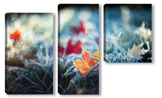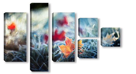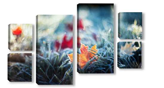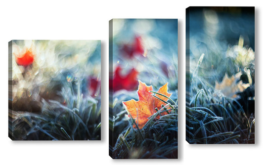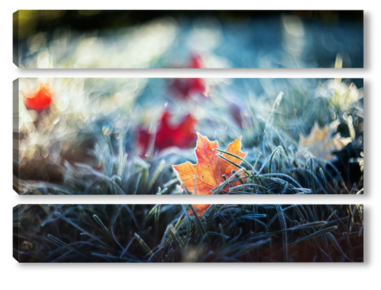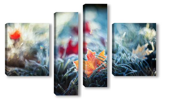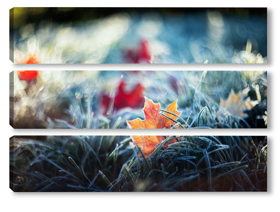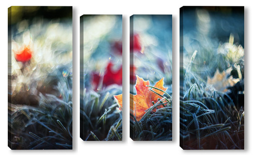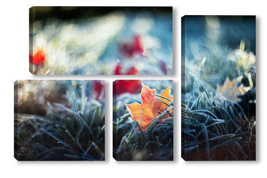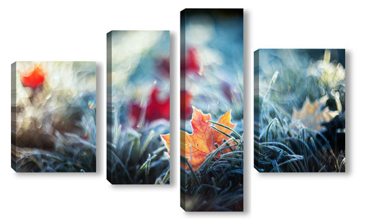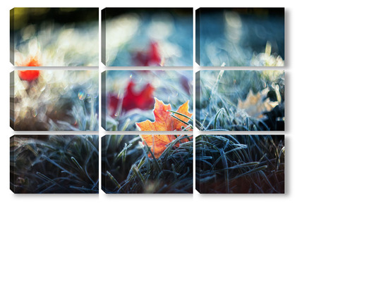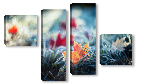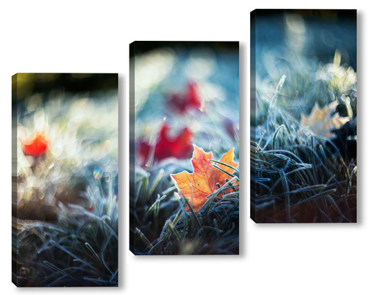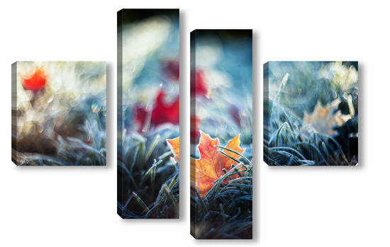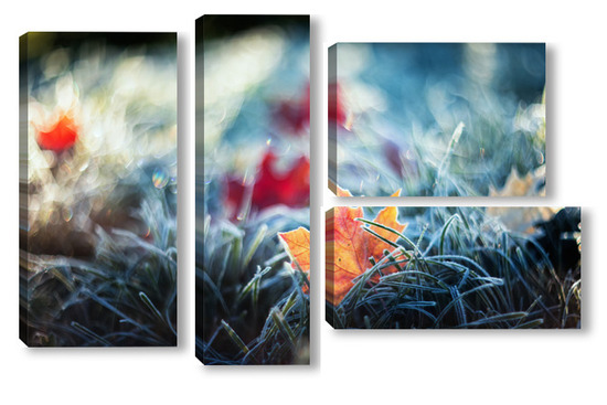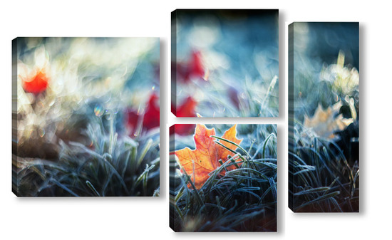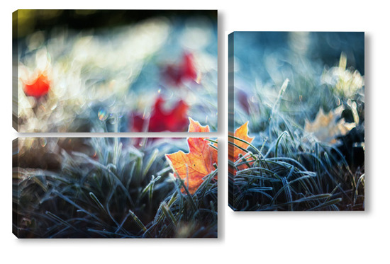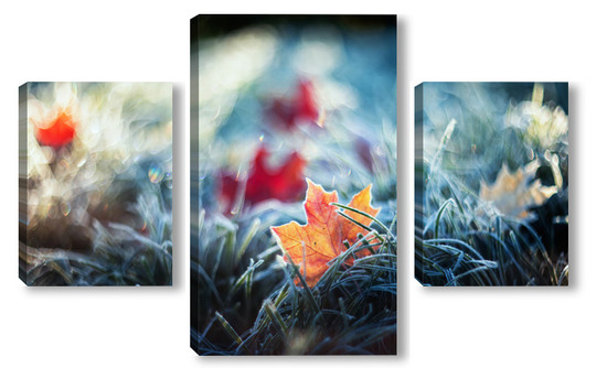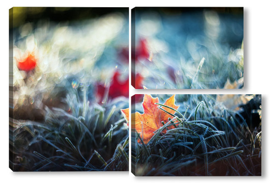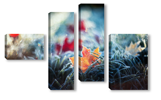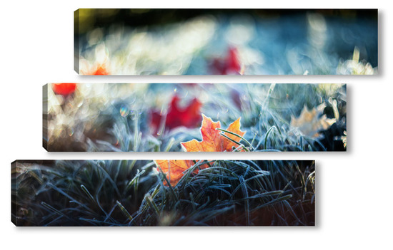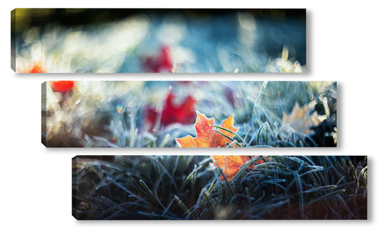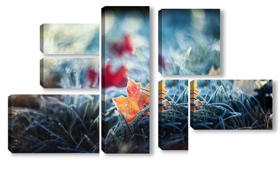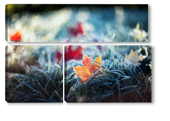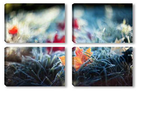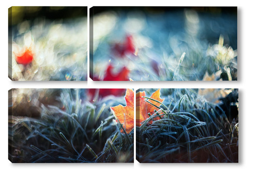 Модульная картина Кленовые листья в траве с инеем Кленовые листья в траве с инеем