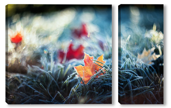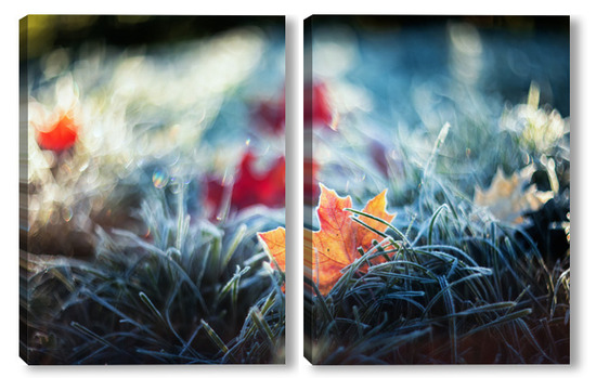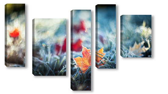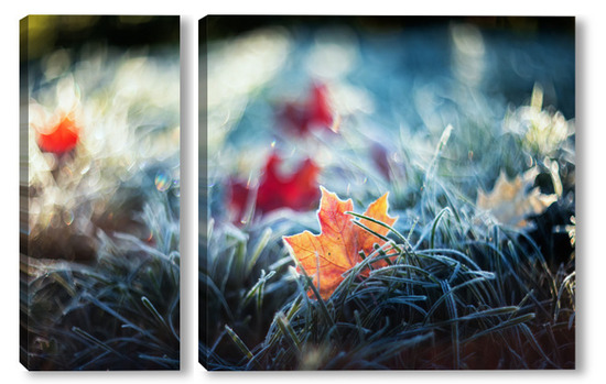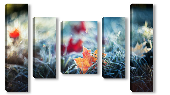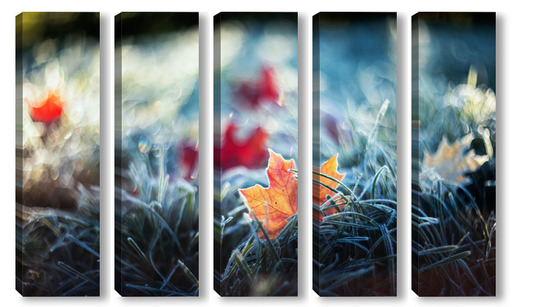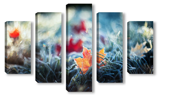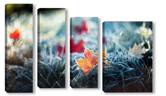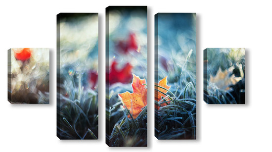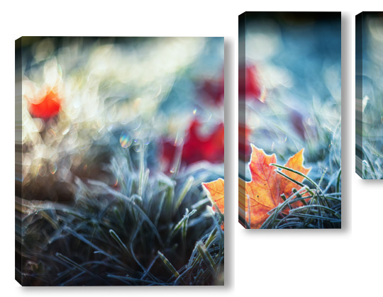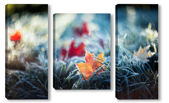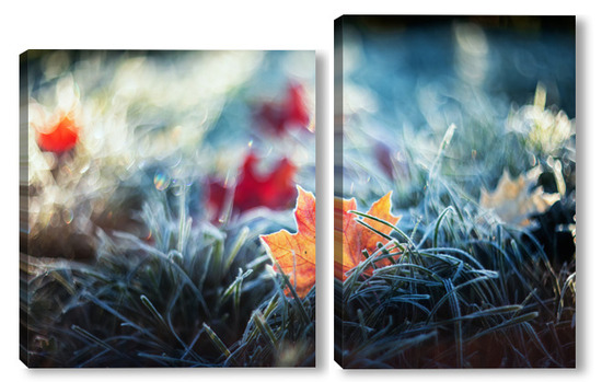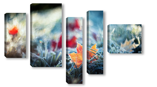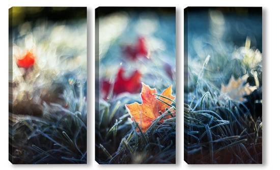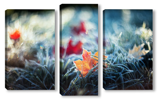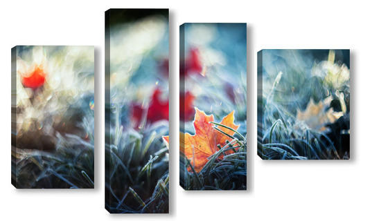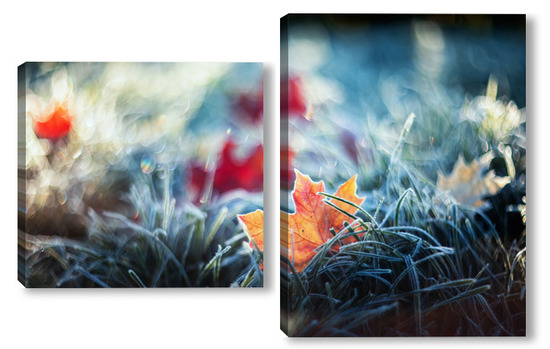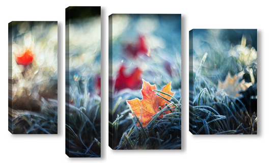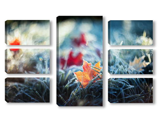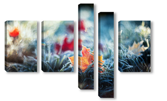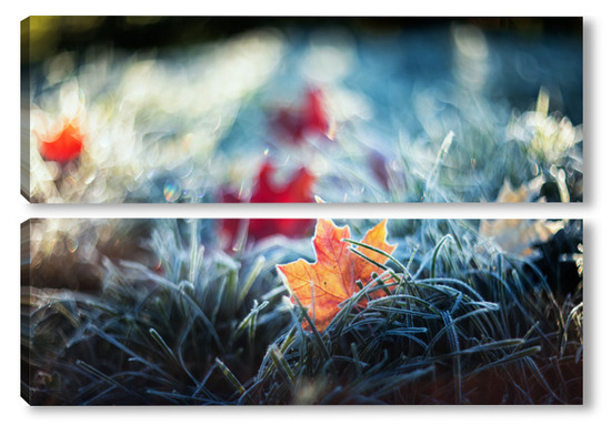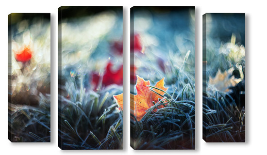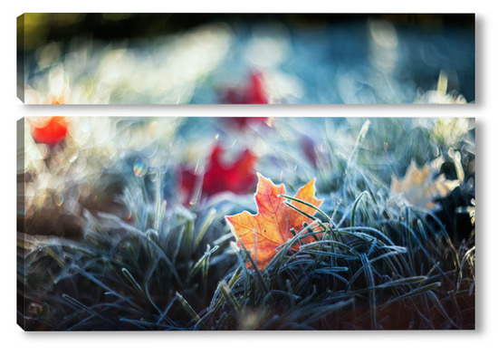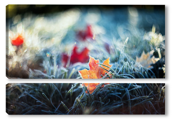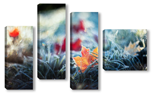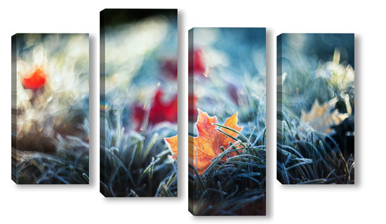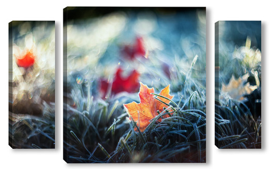 Модульная картина Кленовые листья в траве с инеем Кленовые листья в траве с инеем