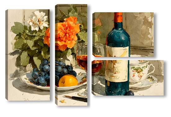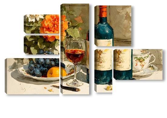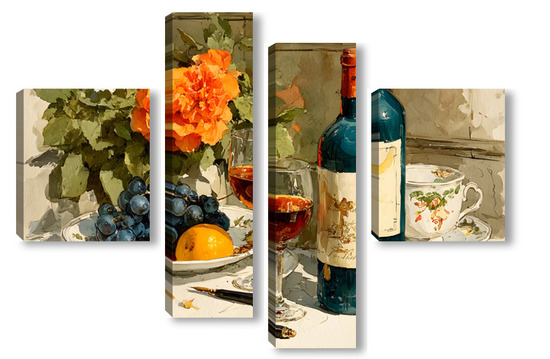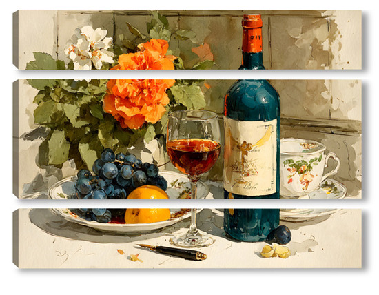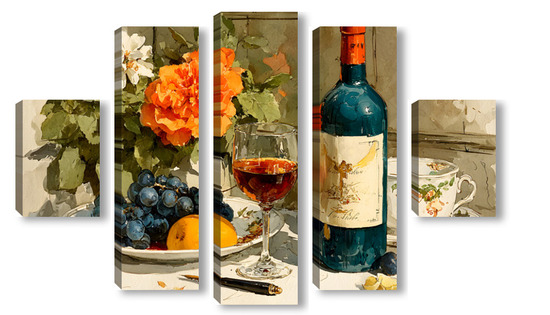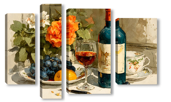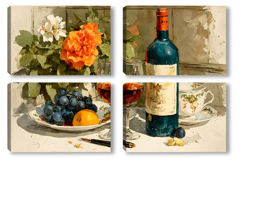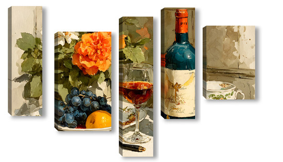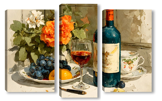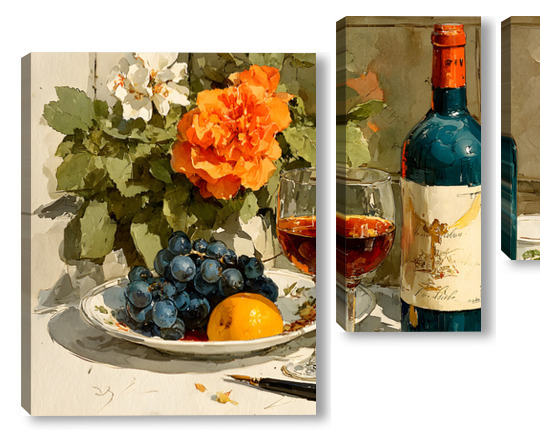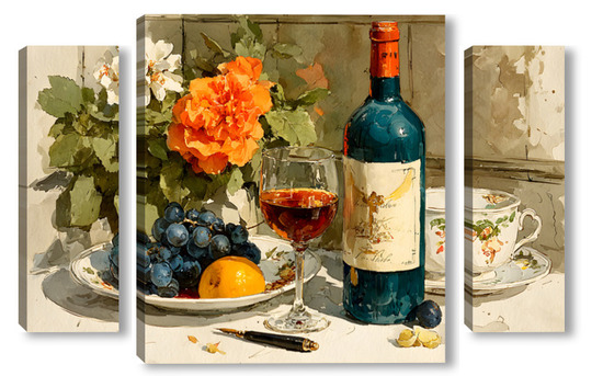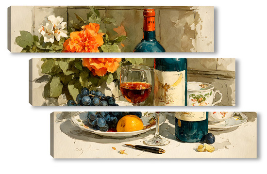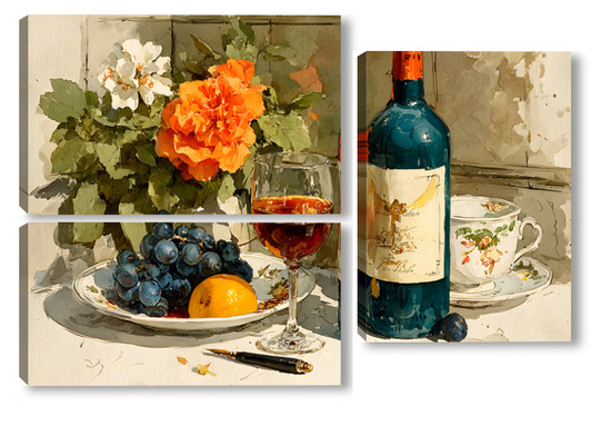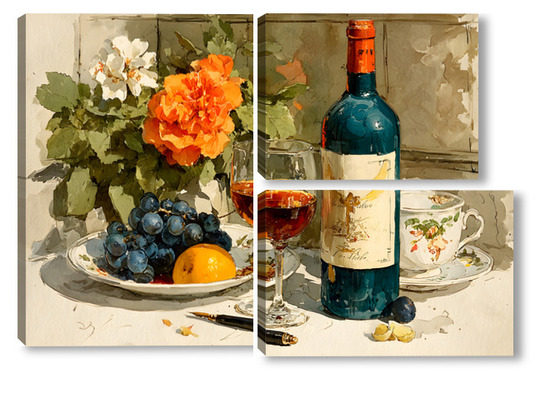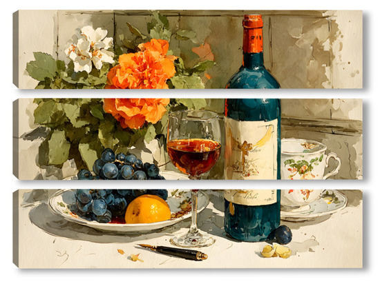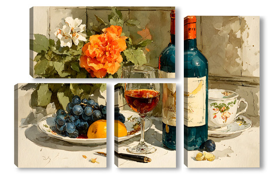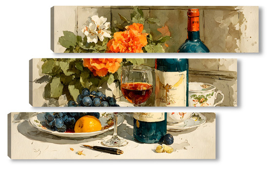 Модульная картина Натюрморт вино и цветы Натюрморт вино и цветы