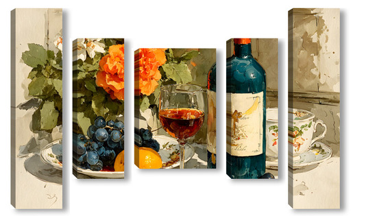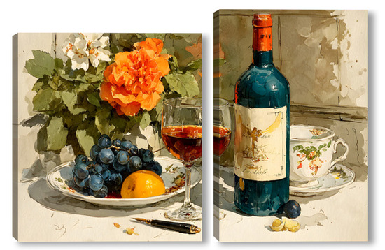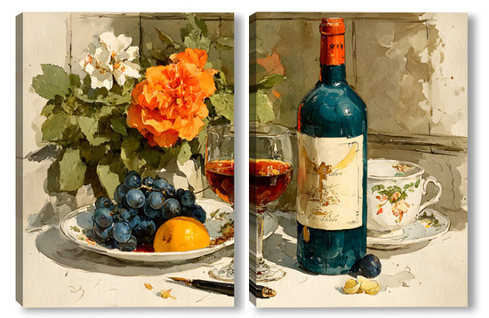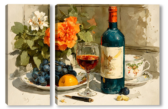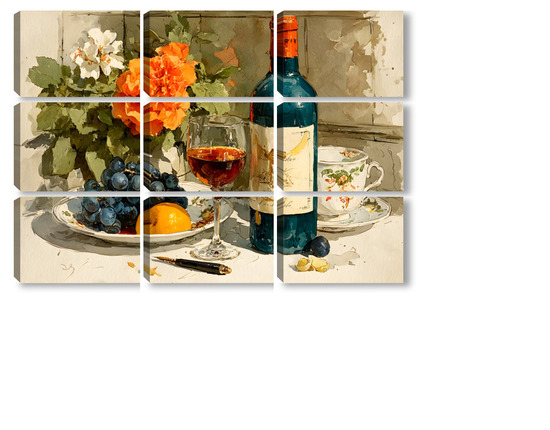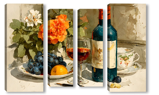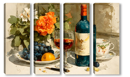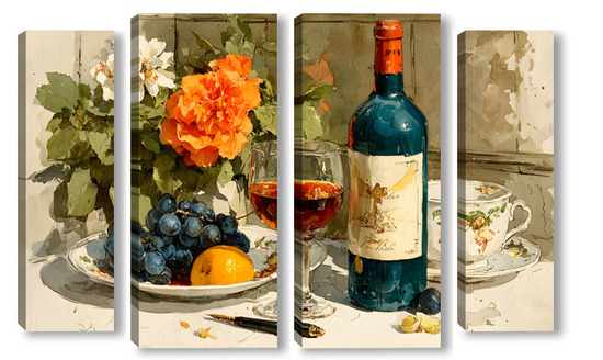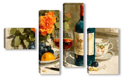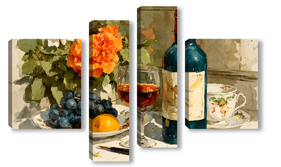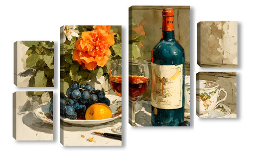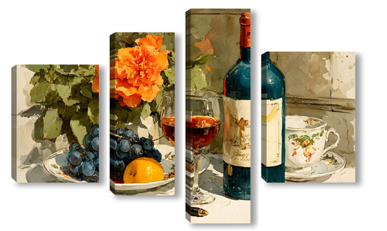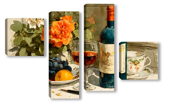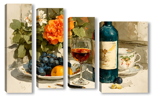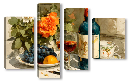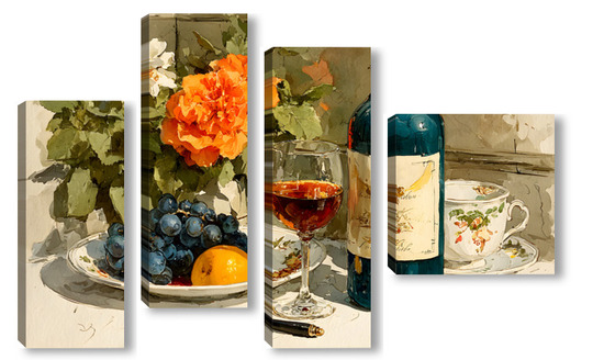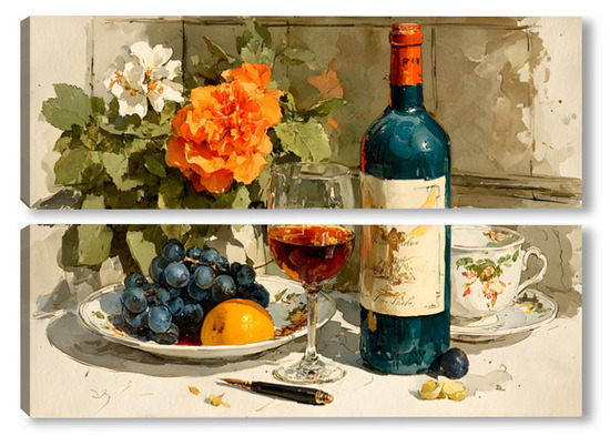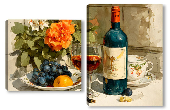 Модульная картина Натюрморт вино и цветы Натюрморт вино и цветы