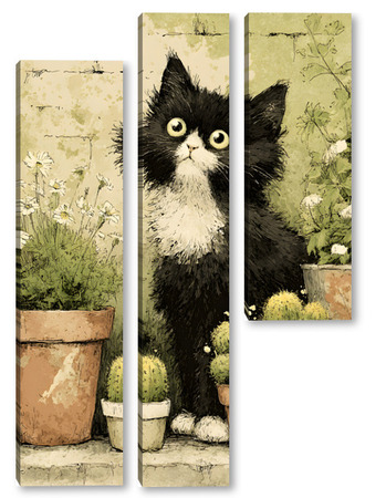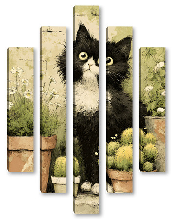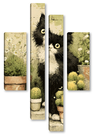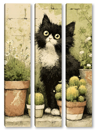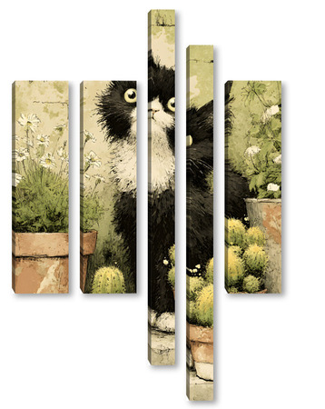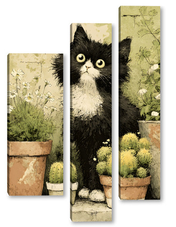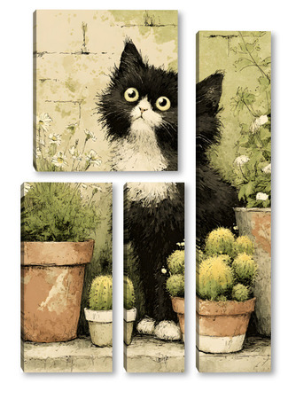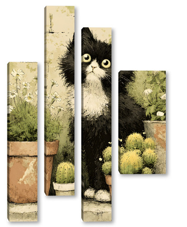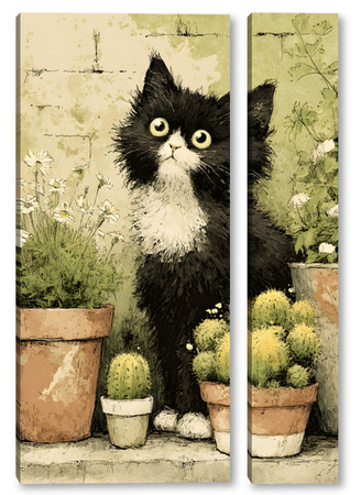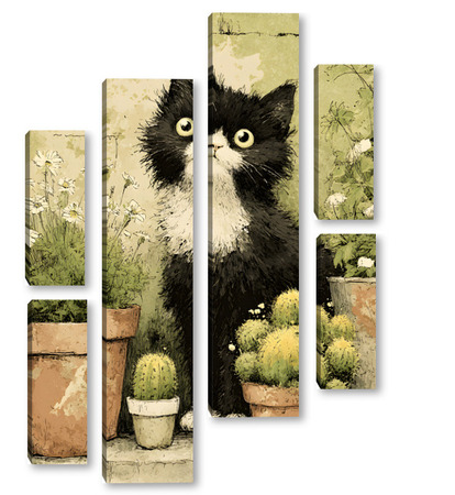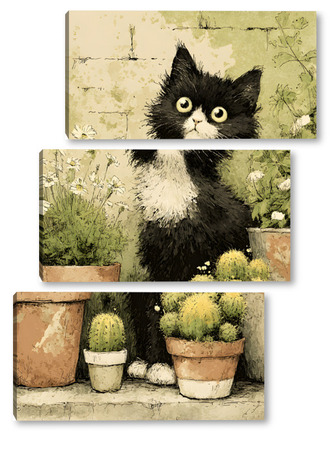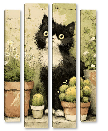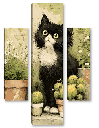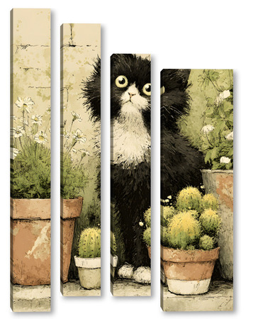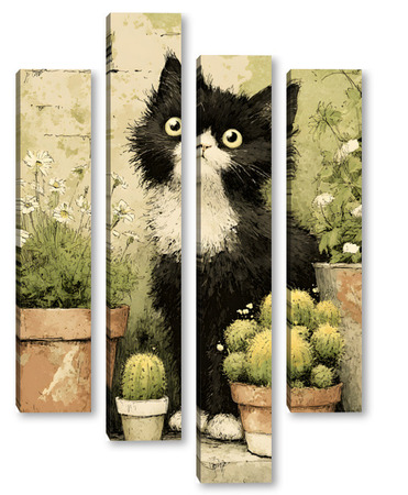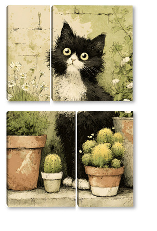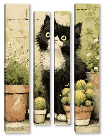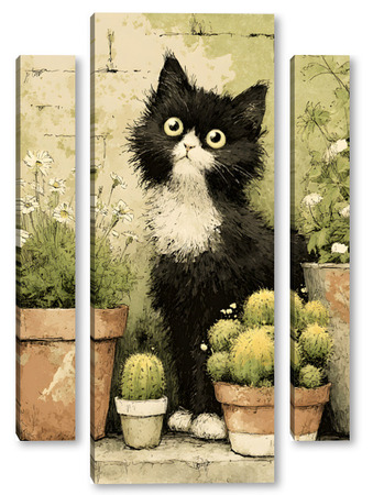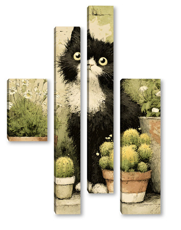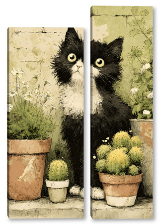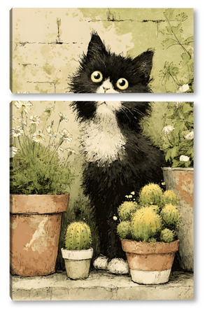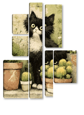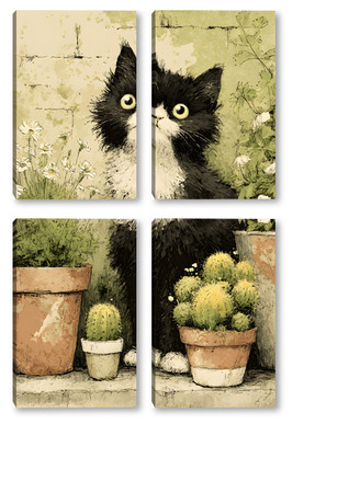 Модульная картина Кот и кактусы Кот и кактусы
