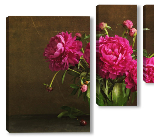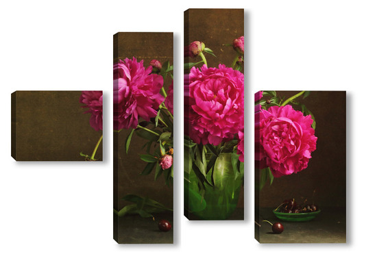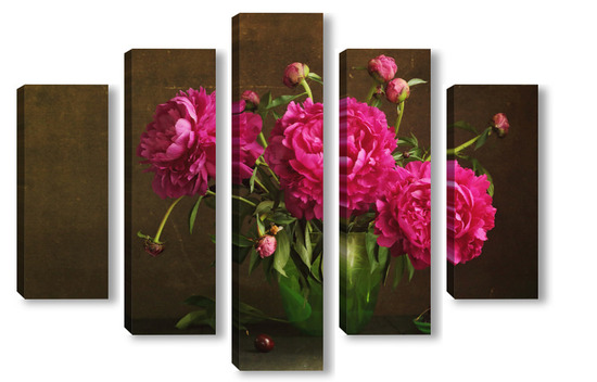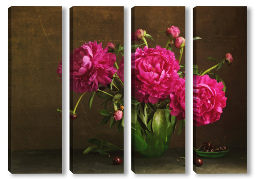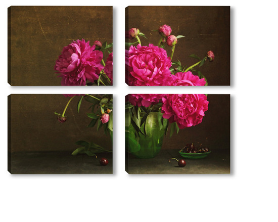 Модульная картина Красные пионы в зеленой вазе Красные пионы в зеленой вазе