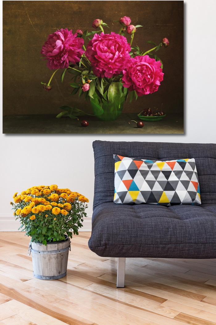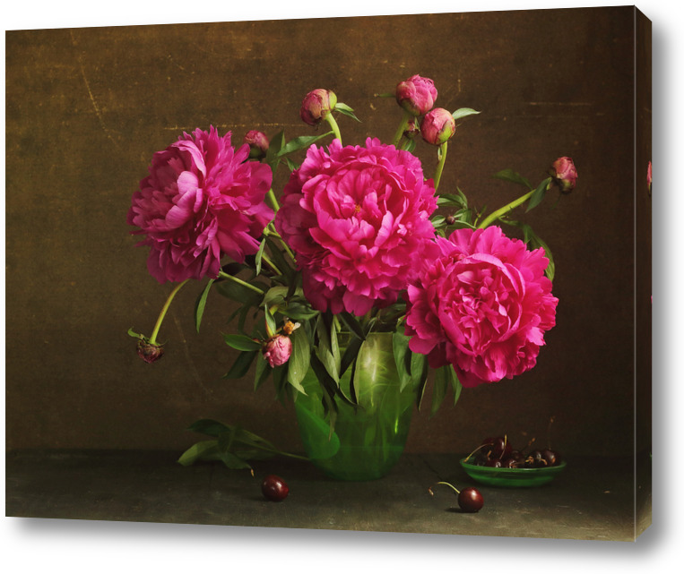 Постер Красные пионы в зеленой вазе