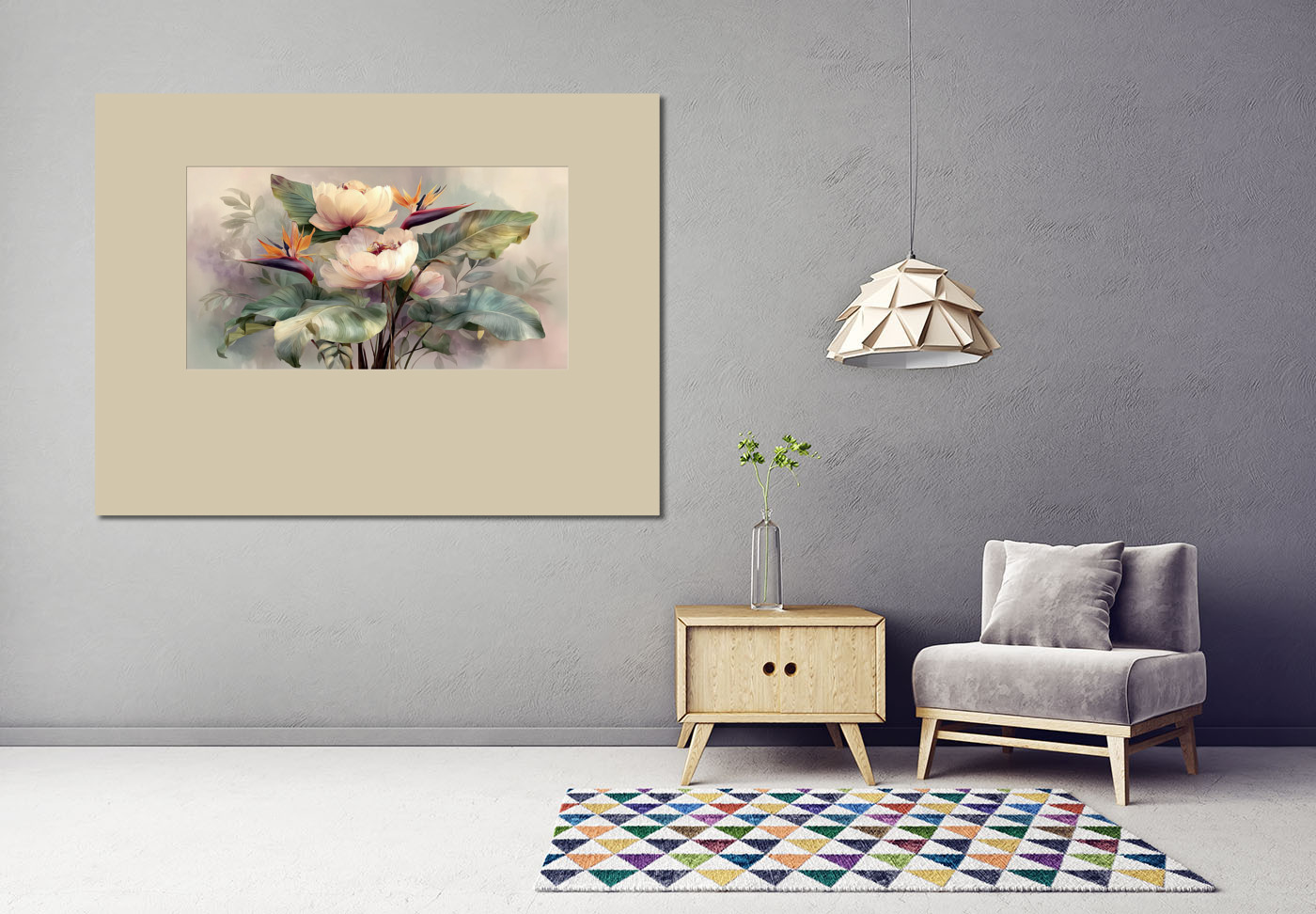 Ботаническая композиция в мягких пастельных тонах прекрасный выбор для украшения интерьера — добавит нотку природной гармонии в гостиную, спальню или кабинет.