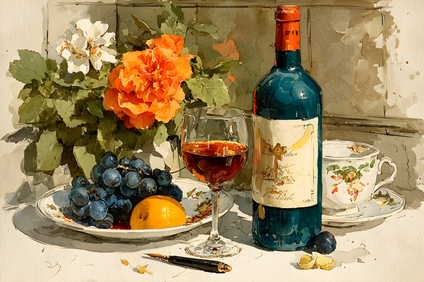 Натюрморт вино и цветы