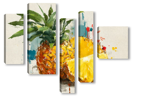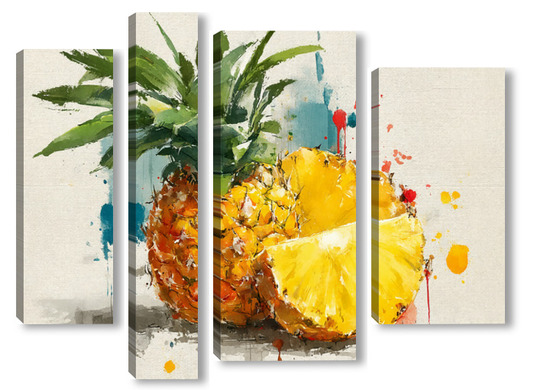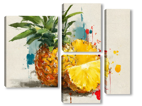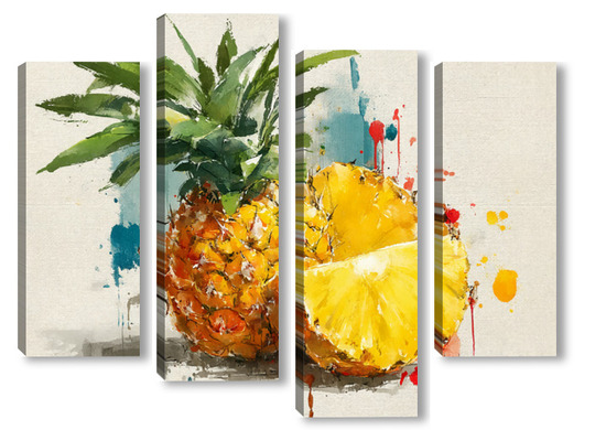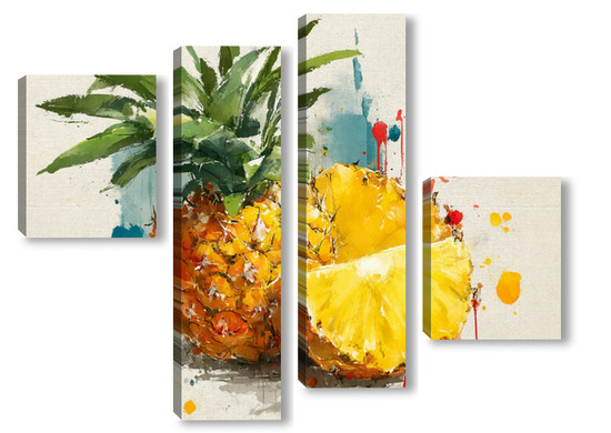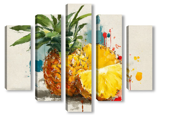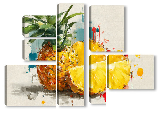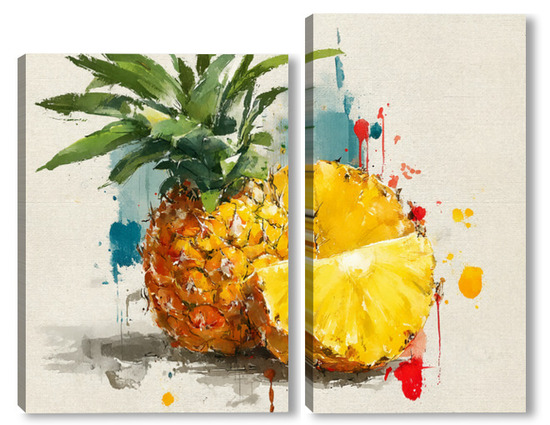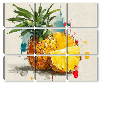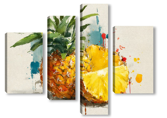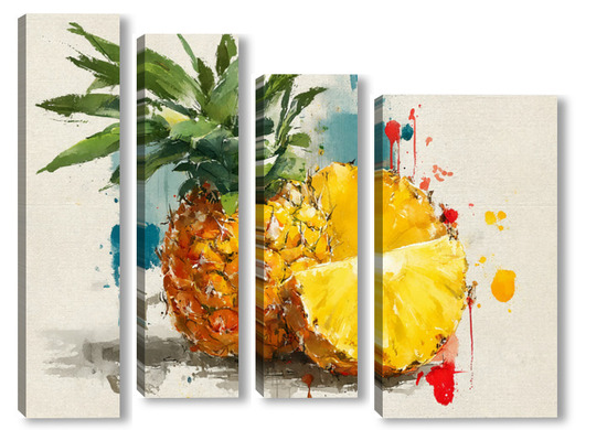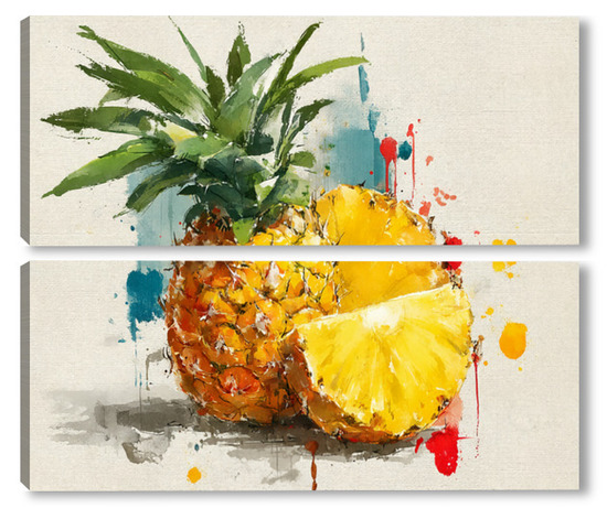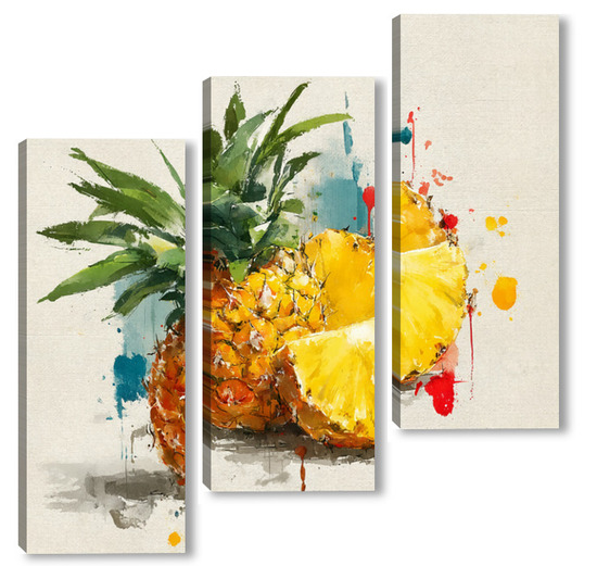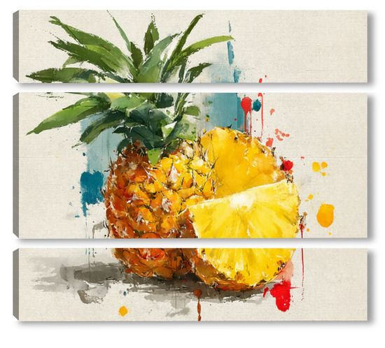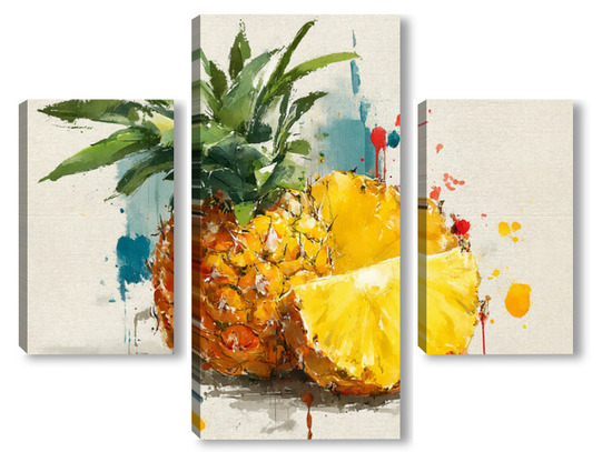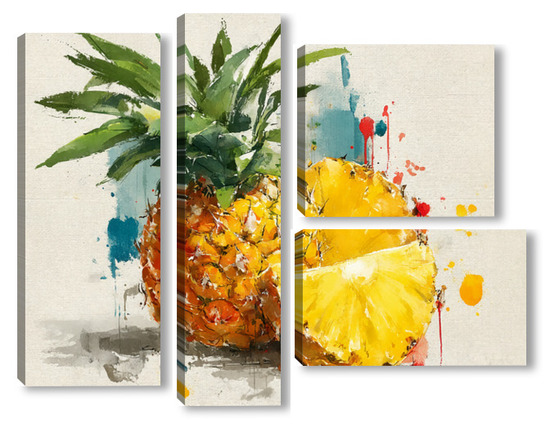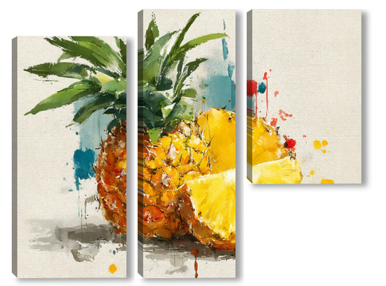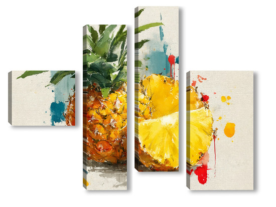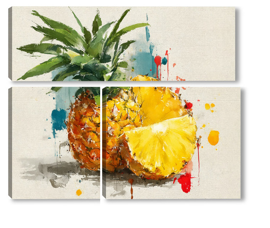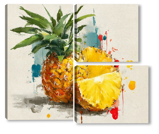 Модульная картина Ананас в акварельных брызгах Ананас в акварельных брызгах