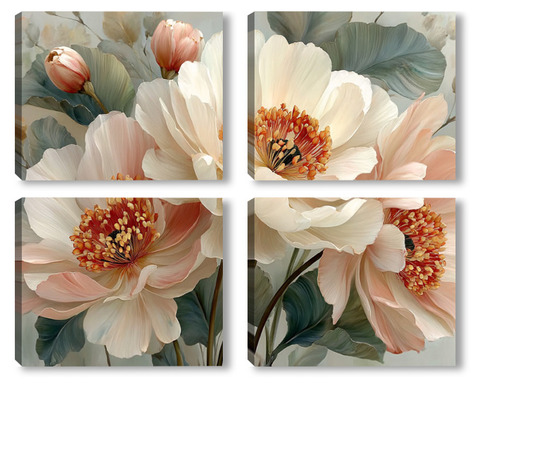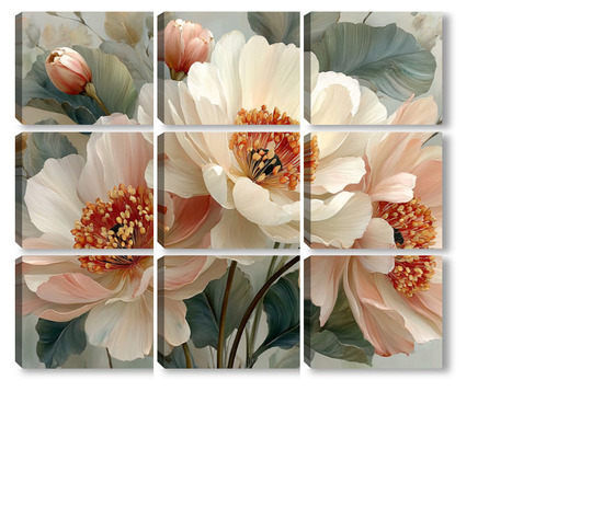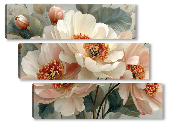 Модульная картина Жемчужные пионы Жемчужные пионы