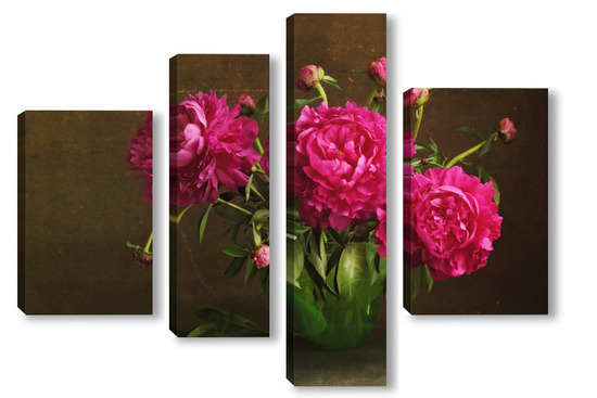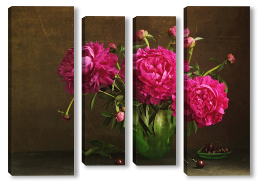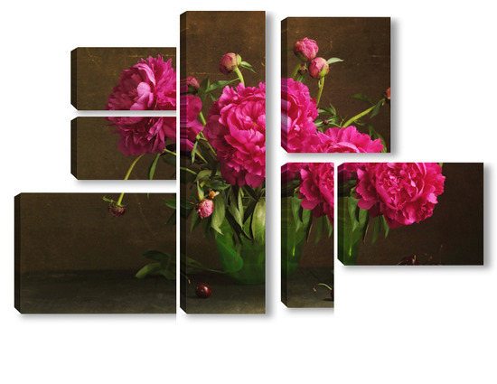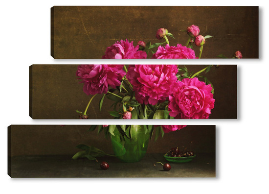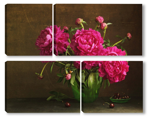 Модульная картина Красные пионы в зеленой вазе Красные пионы в зеленой вазе