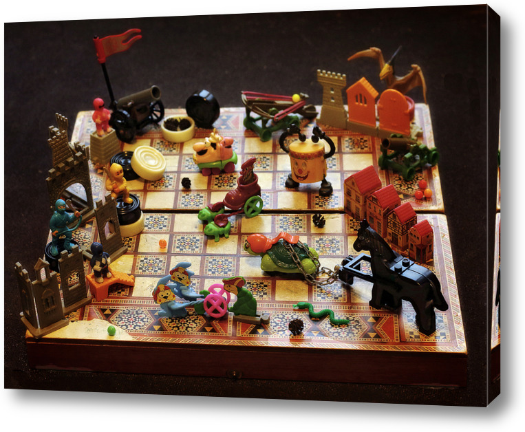 Вариации на тему Шахматной доски Марино Дегано. Эти шахматы далеки от обычной двухцветной игры, это безумно красочное поле битвы, где сражаются, работают и играют изо всех сил. Новый взгляд на игру. Этот вариант обязательно доставит вам море удовольс