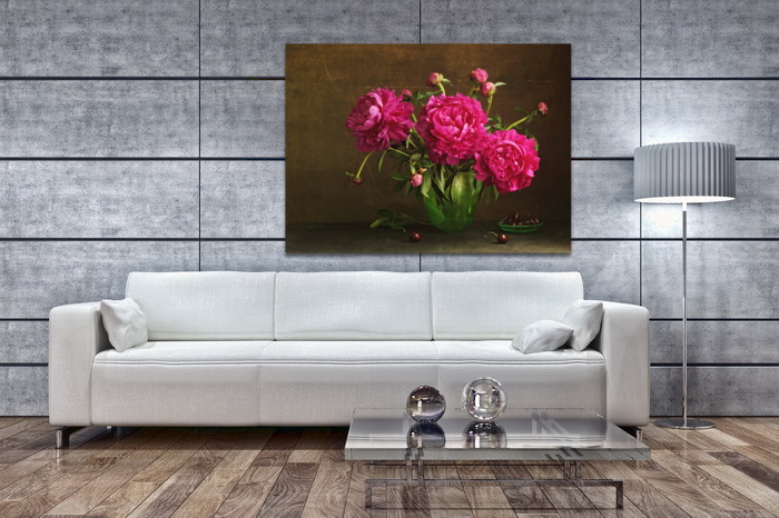 Модульная картина Красные пионы в зеленой вазе
