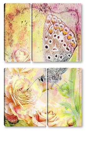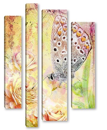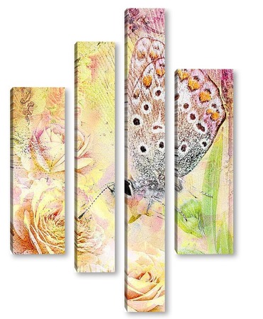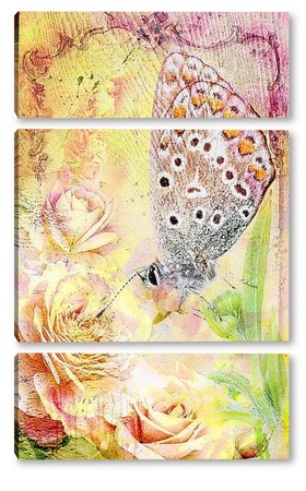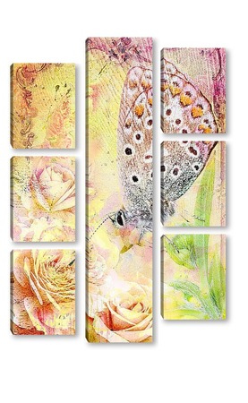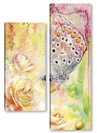 Модульная картина Бабочка в розах Бабочка в розах