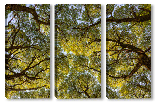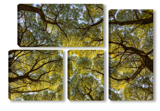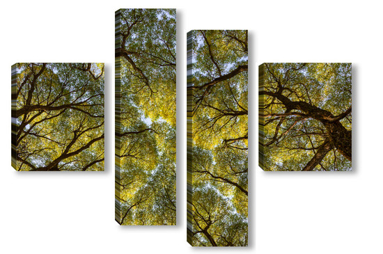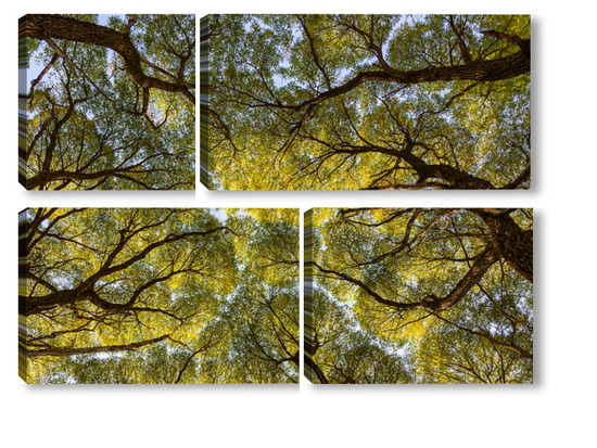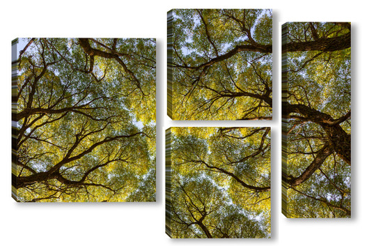 Модульная картина Кроны деревьев с ветвями и листьями Кроны деревьев с ветвями и листьями