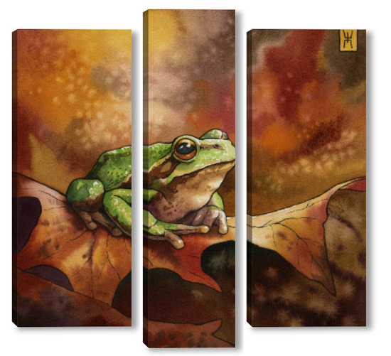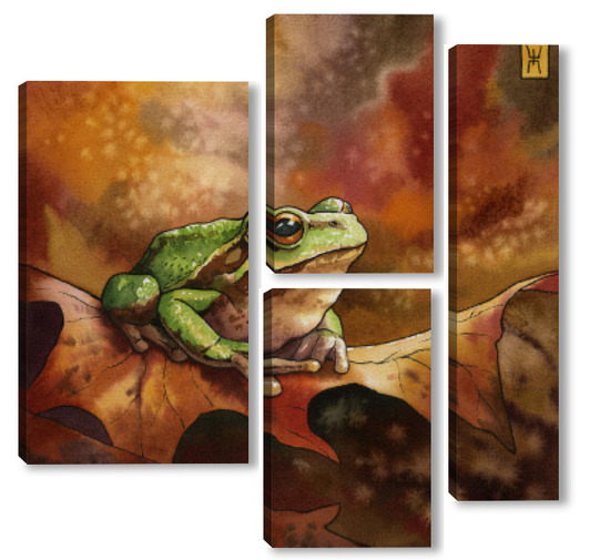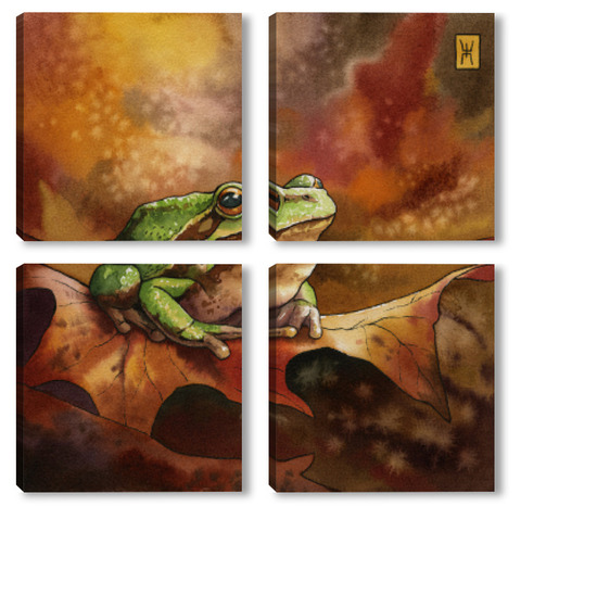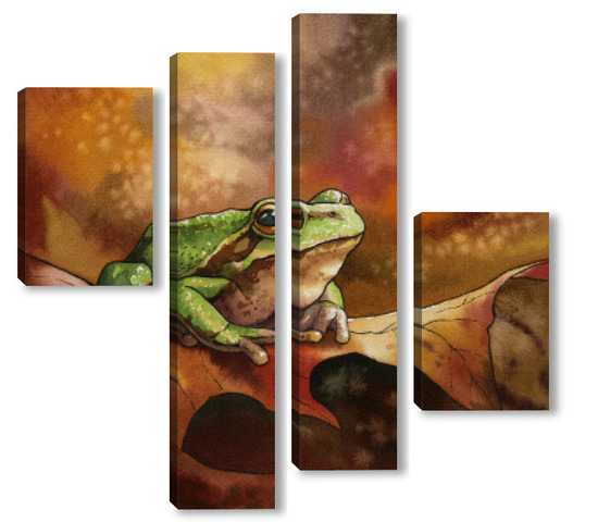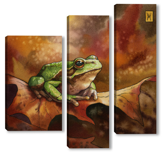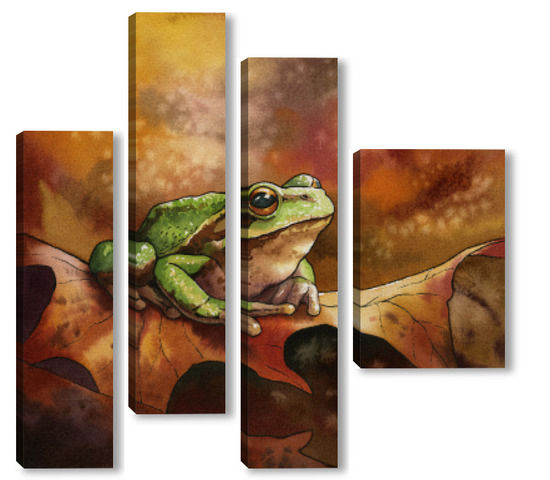 Модульная картина Акварель "Лягушка и осень" Акварель "Лягушка и осень"