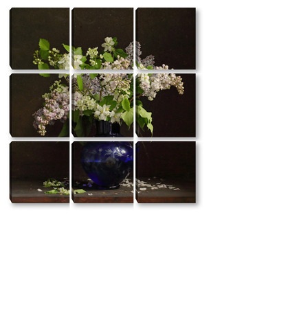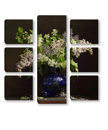 Модульная картина Букет сирени в синей вазе Букет сирени в синей вазе