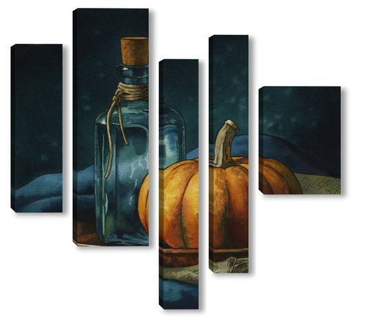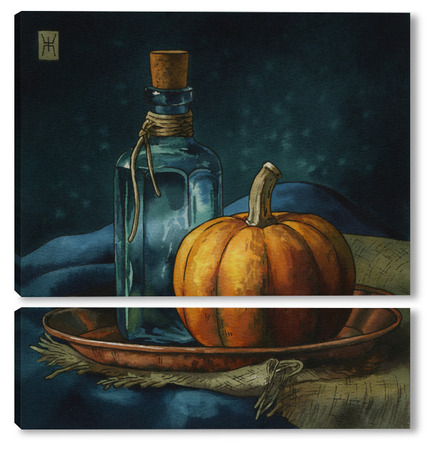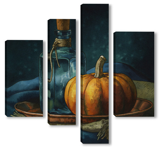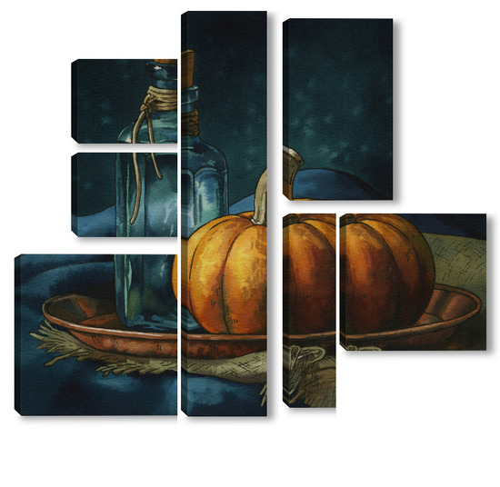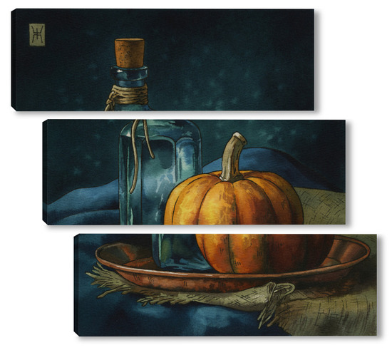 Модульная картина Акварель "Натюрморт с тыквой" Акварель "Натюрморт с тыквой"