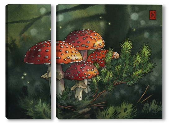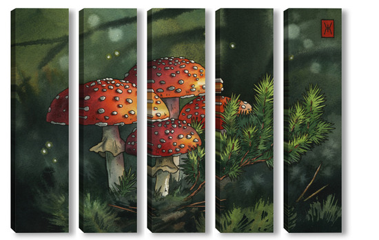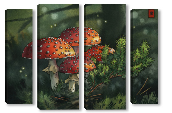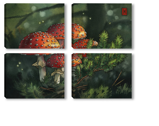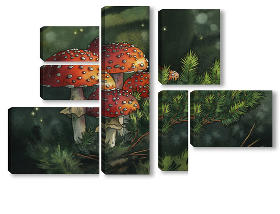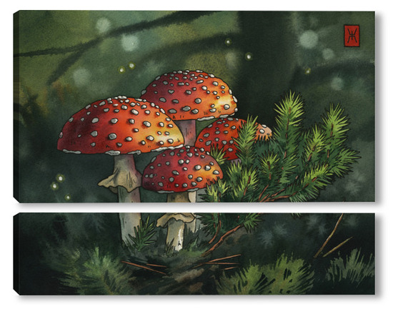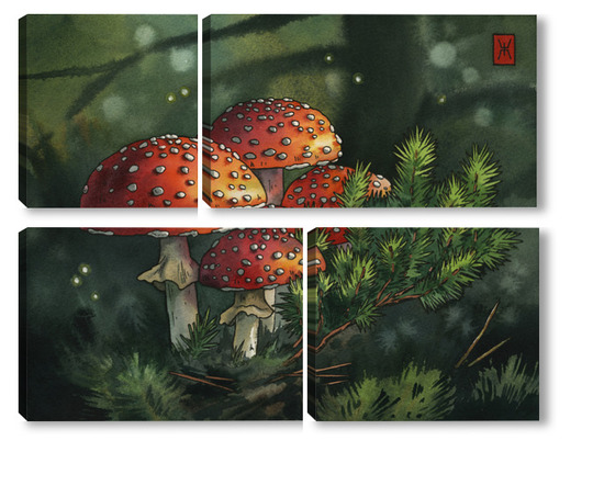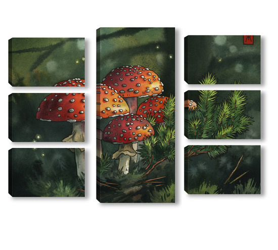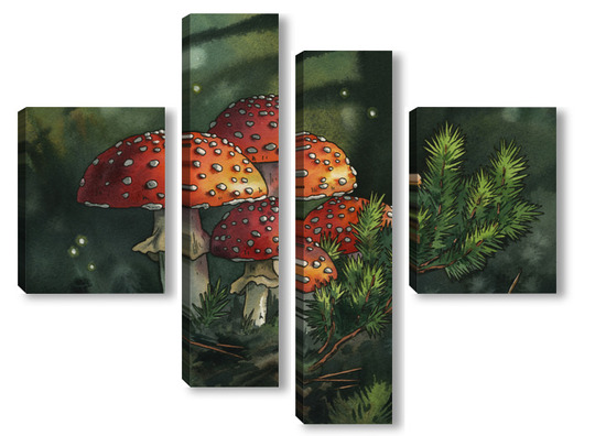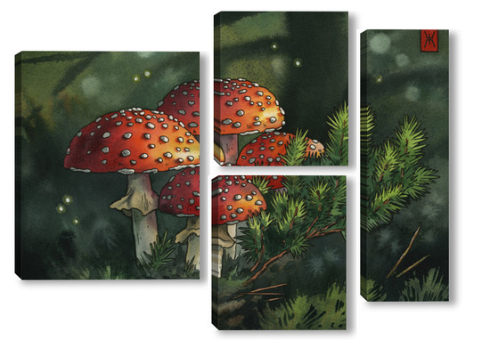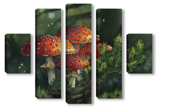 Модульная картина Акварель "Мухоморы" Акварель "Мухоморы"