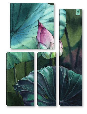 Модульная картина Акварель "Лотос" Акварель "Лотос"