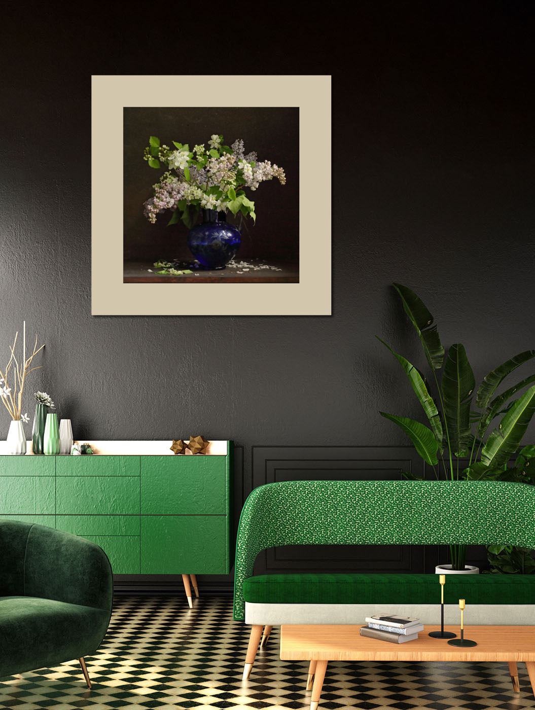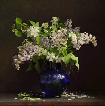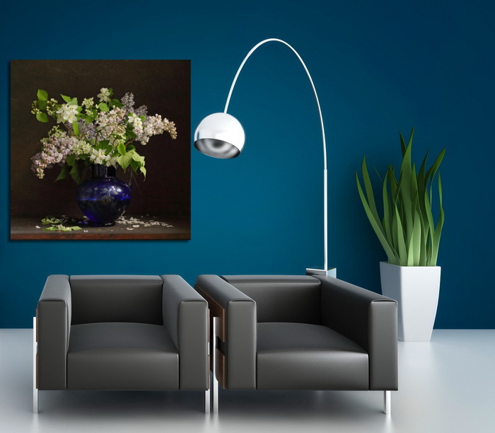 Постер Букет сирени в синей вазе