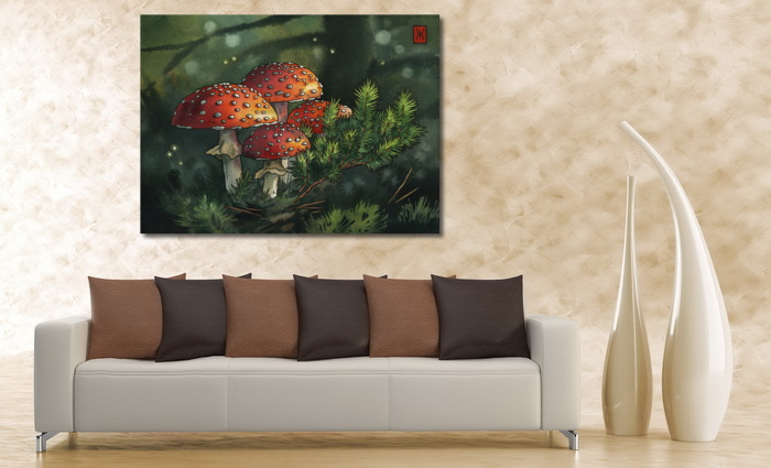 Модульная картина Акварель "Мухоморы"