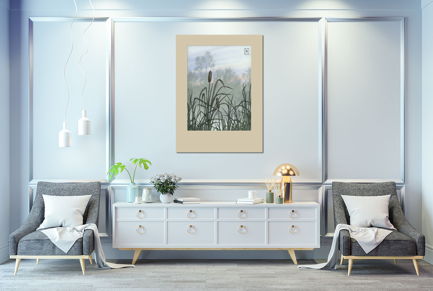 Акварель "Рогоз"